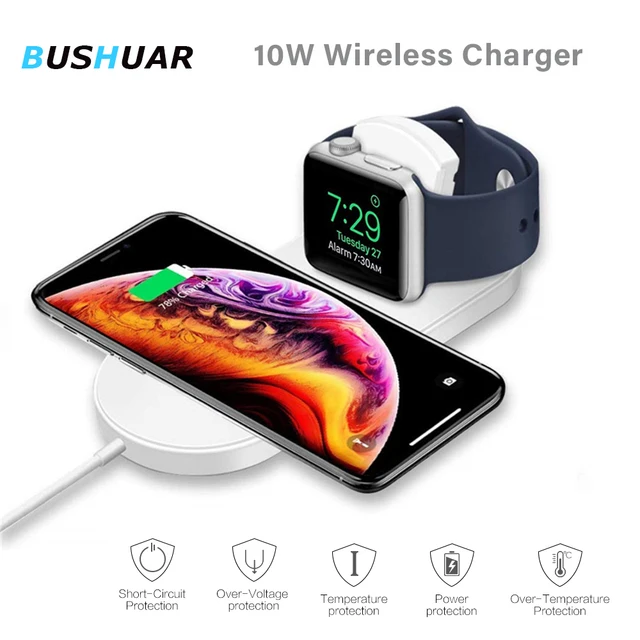 OVERVIEW Product BUSHUAR 10W Wireless Fast Charger 2 in 1 QI Wireless Charging Pad For Apple Watch Series 4/3/2/1 Fo